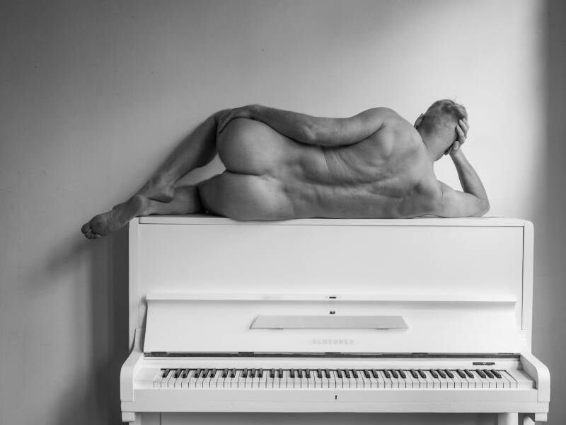 In mijn oude studio stond een piano – een klassiek en tegelijkertijd spannend element. Ik vroeg hem of hij naakt op de piano wilde poseren. Het leverde een aantal krachtige, bijna filmische beelden op. Vandaag kreeg ik bericht dat hij graag nog eens terug wil komen voor een nieuwe, artistieke shoot. Dat zijn de dingen die me blij maken.