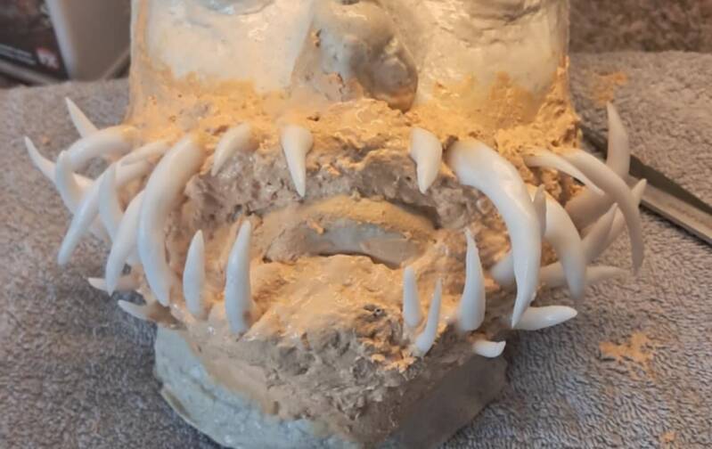 Met een mengsel van latex en meel boetseerde ik een stevige basis waarin de tanden geplaatst werden.